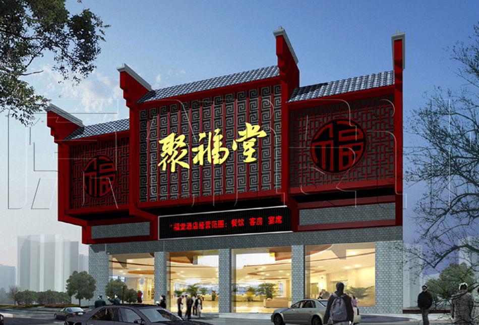 门头设计要注意与周围所处环境之间的呼应性,要因地制宜。