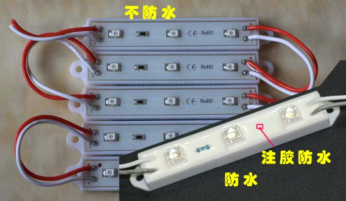 防水led模组与不防水的区别。户外必须要用注胶防水模组。