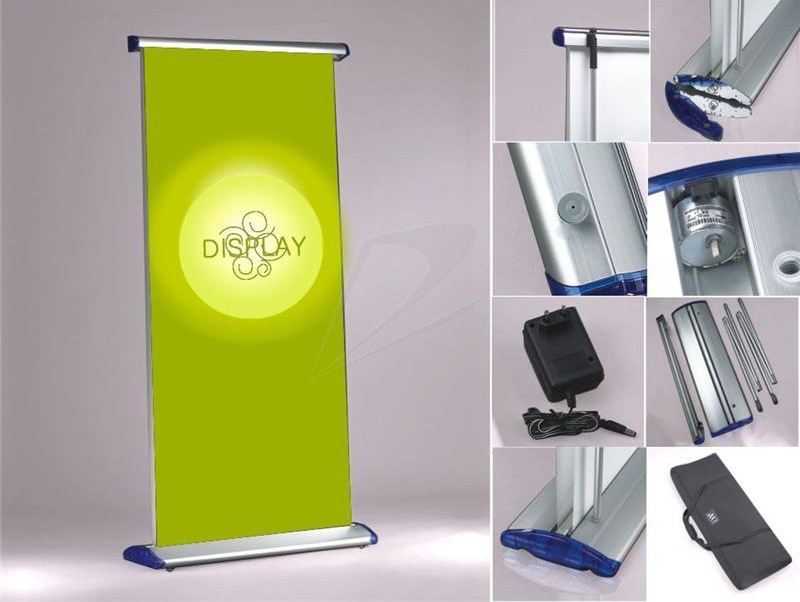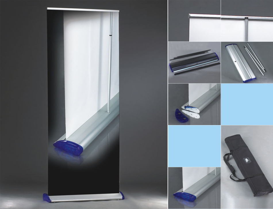 中文名 易拉宝 外文名 Roll up Banner 用于场所会议、展览、销售宣传等材质塑钢、铝合金、PP合成纸、背胶等