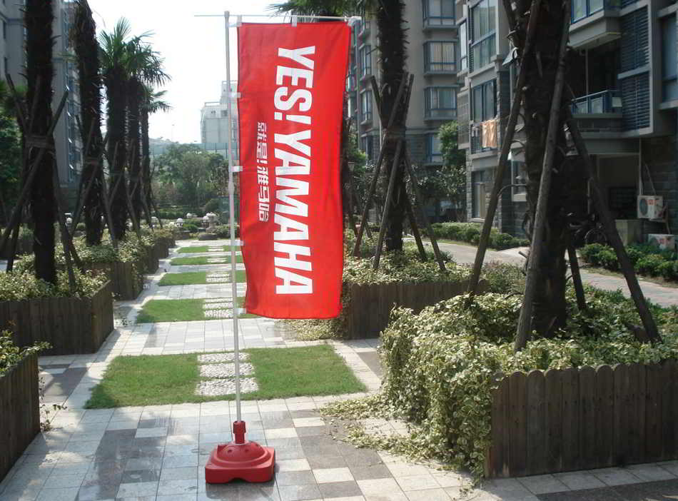底座采用全新PE材料,吹塑工艺,铝合金架体壁厚1.0MM具备抗风能力强,抗氧化,环保,更耐磨,底座不易漏水的效果,底座可以注沙、注水主要是为了旗杆底座的配重,加强抗风性能。
