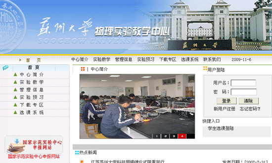 苏州大学物理实验教学中心起源于东吴大学物理实验室,历经江苏师范学院、苏州大学和“四校合并”后的新苏州大学四个发展阶段。