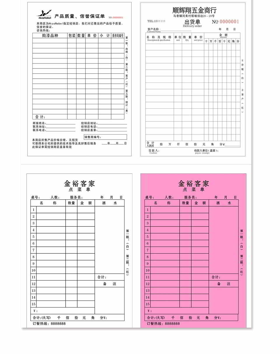 收据联单|销售销货清单|无碳复写联单|出库单