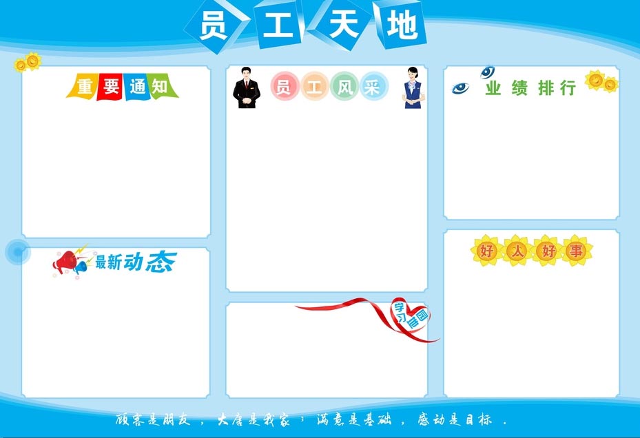 员工天地展板、奖惩信息栏、公告栏